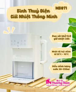 Một sản phẩm đun hâm nước pha sữa đa chức năng, khử clo giữ nhiệt 24 tiếng. Mẹ có thể cài đặt linh hoạt nhiệt độ 35 – 95 độ c, điều chỉnh lượng nước 30 – 330ml. Bình thủy điện giữ nhiệt thông minh Moaz BéBé MB – 071 thiết kế sang trọng, tinh tế, chất liệu cao cấp từ: nhựa PP, ABS, thủy tinh Borosilicate… Dung tích 1,5 lít mẹ có thể pha sữa cho bé cả ngày dài, tiết kiệm thời gian cho mẹ và an toàn cho bé.