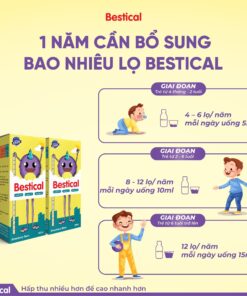 Thực phẩm bảo vệ sức khỏe Bestical là dòng canxi sinh học đầu tiên tại Việt Nam, kết hợp vitamin D3 và vitamin K2. Sản phẩm giúp bé hấp thụ tối đa và phân bổ canxi chính xác vào xương, mang đến cho bé hệ xương và răng chắc khoẻ, phát triển chiều cao vượt trội.