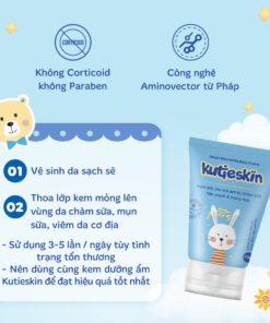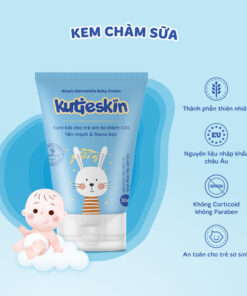Kem chàm sữa Kutieskin dành cho những trường hợp em bé bị chàm sữa (lác sữa), viêm da, khô ngứa, bong tróc da. Đây là giải pháp an toàn và hiệu quả nhanh nhờ chiết xuất từ những nguyên liệu kháng viêm tự nhiên, nổi trội là Nano Bạc, chiết xuất Yến Mạch, tinh nghệ trắng Nano THC và Bơ Shea Đức.