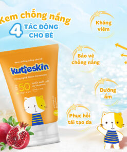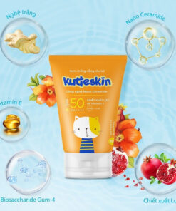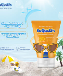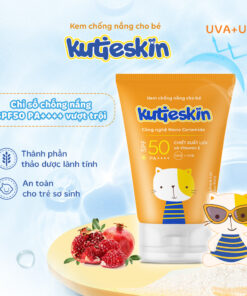 Kem chống nắng cho bé Kutieskin có chỉ số chống nắng vượt trội SPF50 PA++++ giúp bảo vệ tối ưu cho làn da trẻ trước các tác nhân gây hại từ môi trường và ánh nắng mặt trời.