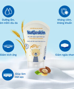 Kem bôi dịu da Kutieskin với các thành phần thảo dược kháng viêm, giảm ngứa tự nhiên hiệu quả cho da, bảo vệ nâng niu làn da và ngăn ngừa việc để lại vết sẹo thâm trên da bé.