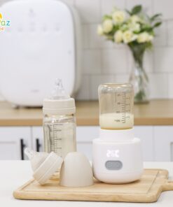 - Sản phẩm tặng kèm 1 bình thủy tinh có thể kết nối với máy để hâm nước pha sữa.