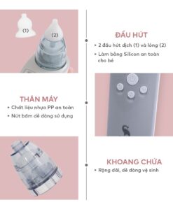 - Đầu hút bằng silicon mềm, mịn, không gây đau miên mạc mũi bé