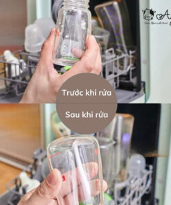 Do máy được trang bị công nghệ rửa bình dưới tia nước phun với áp lực lớn, nhiệt độ cao kết hợp với sấy luồng khí nóng nên tốc độ khô sẽ nhanh hơn. Trên bình sữa hoặc đồ dùng có thể xuất hiện vệt nước khô phía trên. Đây là hiện tượng vật lý hoàn toàn bình thường.
