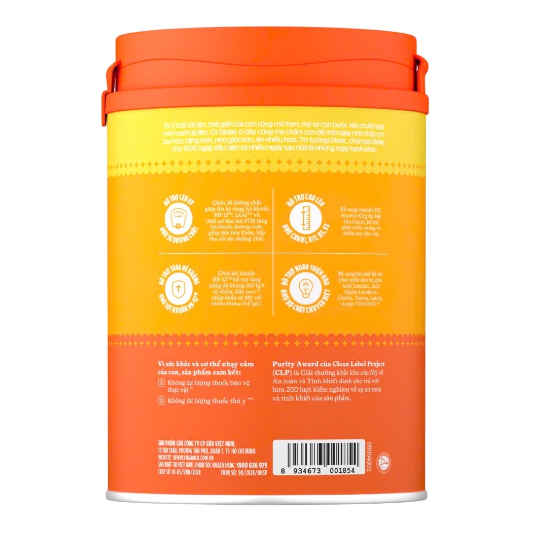 Công thức chuyên biệt với 36 dưỡng chất hỗ trợ bé lên ký, cao hơn, tăng đề kháng và phát triển não bộ. Đạt tiêu chuẩn tinh khiết an toàn Purity Award của Clean Label Project từ Hoa Kỳ với 200 lượt kiểm nghiệm khắt khe.