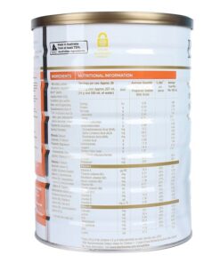 Nước, sữa bột (9 %), đường (2,9 %), chất béo sữa, maltodextrin, chất béo thực vật, chất xơ thực phẩm (FOS (0,25%), Inulin), chất ổn định (466, 460(i), 407, 471), sữa non (500 mg/L),DHA từ dầu cá, hỗn hợp vitamin và khoáng chất (A, D3, E, C, K1, B1, B3, B5, B6, B12, acid folic, kẽm oxyd, biotin, kali iodid, inositol), hương liệu tổng hợp, Immunel (phân đoạn sữa non phân tử lượng thấp) (85,7 mg/L), 2′-Fucosyllactose (2′-FL), Cholin. Có chứa sữa, đậu nành.