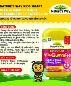 Vitamin tổng hợp Nature’s Way Vita Gummies thiết kế dạng viên nhai dẻo mềm. Loại kẹo dẻo giúp cho trẻ cảm thấy ngon miệng và vui thú mỗi khi nhai kẹo. Sản phẩm thích hợp cho trẻ từ 2 tuổi đã hoàn thiện kỹ năng nhai, nuốt thành thạo và rất mê kẹo dẻo. Vì thế, các mẹ yên tâm để lựa chọn cho bé yêu.